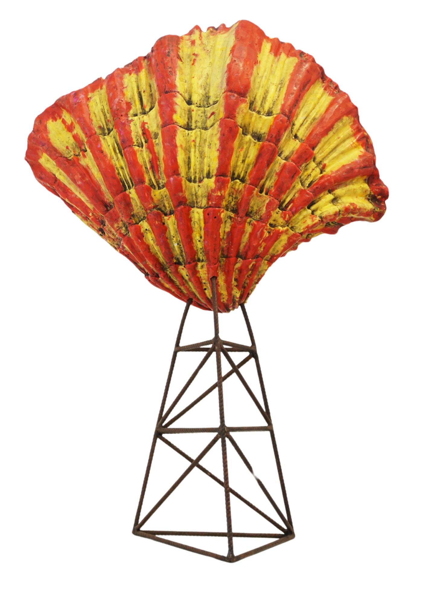 Référence à une compagnie pétrolière, le Bénitier soulève ici un paradoxe : Le logo en forme de coquillage faisant initialement écho aux énergies « fossiles» exploitées par le groupe nous renvoie aujourd’hui davantage aux tonnes de plastiques qui s’échouent sur les plages du monde parmi nos coquillages contemporains. Avec la reconnaissance du terme d’Anthropocène, nous sommes en train d’admettre que nos déchets plastiques sont voués à devenir les fossiles de demain. Ce bénitier puise dans l’iconographie religieuse chrétienne pour nous rappeler que les énergies fossiles sont une ressource précieuse, sacrée dans notre économie mondialisée. Et qu’elles s’amenuisent dangereusement.